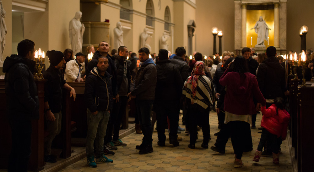 Gudstjenesten begyndte med, at flygtninge og asylansøgere bar lys ind i kirken, hvor biskop