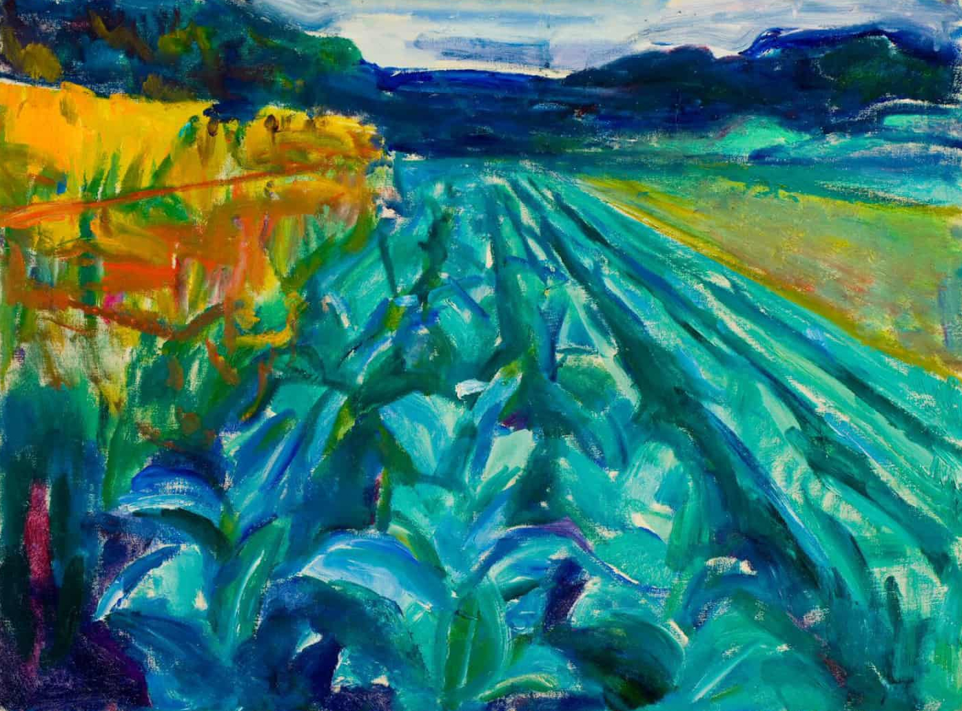 Se på den kålmark, som Edvard Munch malede i 1915. Kålen i forgrunden er malet groft og næsten skitseagtigt og opløser sig i grønne og blå strøg ind mod baggrunden. Ved siden af marken er der et felt med gult, over det et felt med mørkegrønt, og over det igen et smalt felt med en mørknende himmel. Det er alt, det er hele billedet.