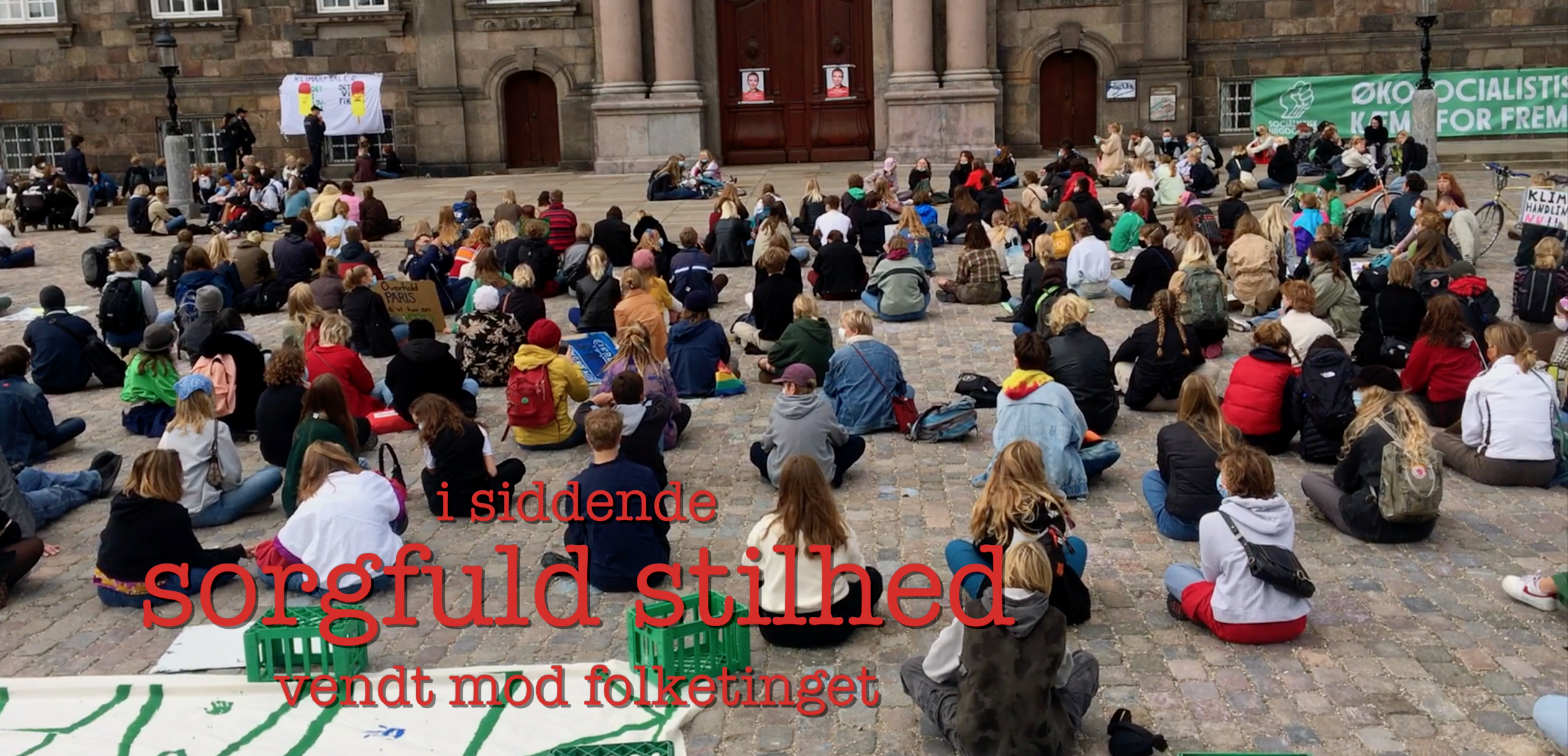 I otte dage op til folketingets åbning slog klimabevægelsen lejr på Christiansborgs Slotsplads med en lang række workshops, happenings, talere og et hav af interviews med både tv og skrevne medier. De fyldte pladsen med unge, der i lange rækker siddende i stilhed vendt mod folketinget i sorgfuld demonstration over de tab, de ikke kan lægge blomster for. Om natten optog jeg deres overvejelser om dagens events og samtaler med forbipasserende. På den 8. dag uden søvn var 17-årige Sigrid fra Viborg i DR’s Orientering på P1, hvor hun holdt en dundertale med fakta og argumenter på bordet, når de to journalister går kritisk til hende.