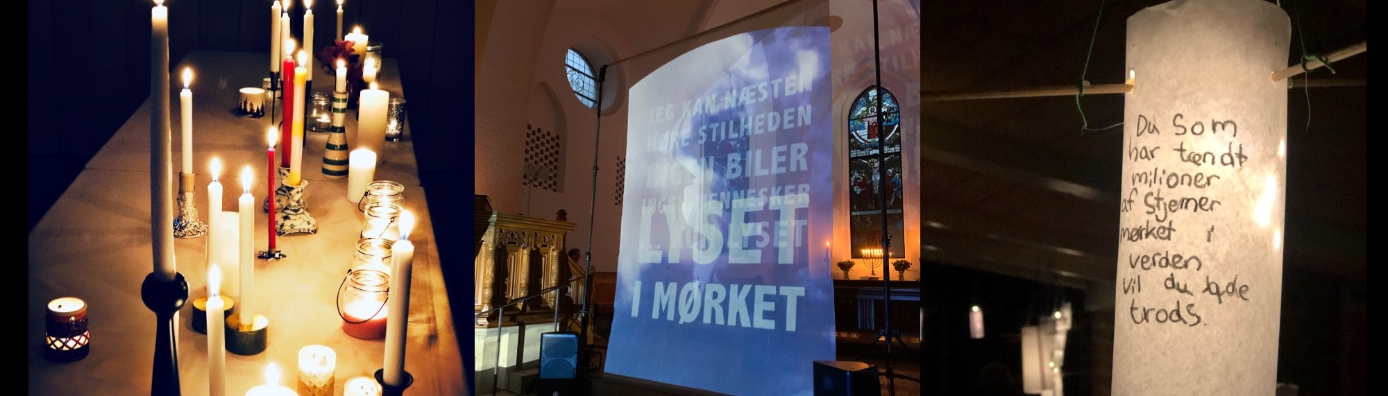 I Thomas Kingos Kirke i Odense har de arbejdet med lys og mørke sammen med en lokal performance-kunstner, Tine Louise Kortermand. Det var planlagt som en kyndelmissegudstjeneste, midt i januarmørket, men corona vendte op og ned på planerne, så i stedet endte det i en ’lyse nætter-gudstjeneste’.